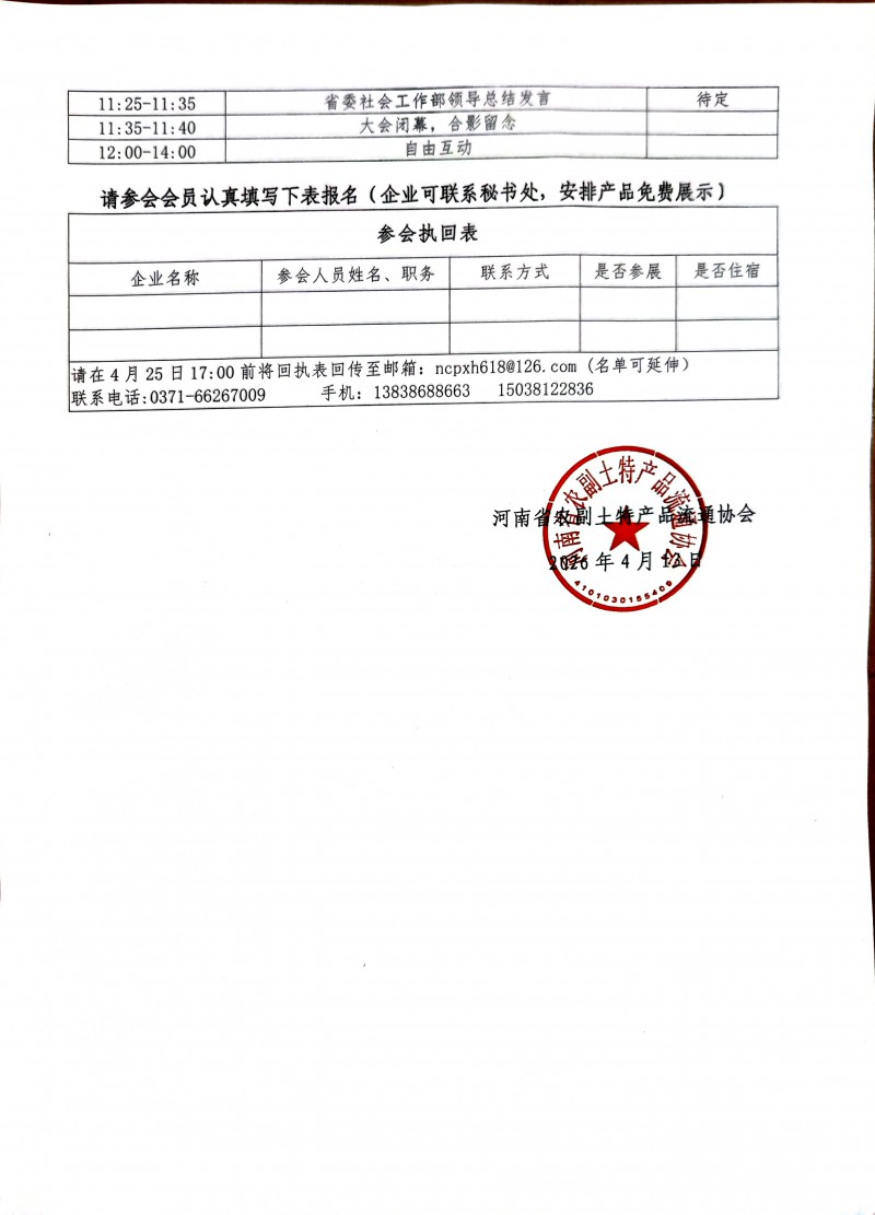 • 河南省农副土特产品流通协会关于召开第四届会员